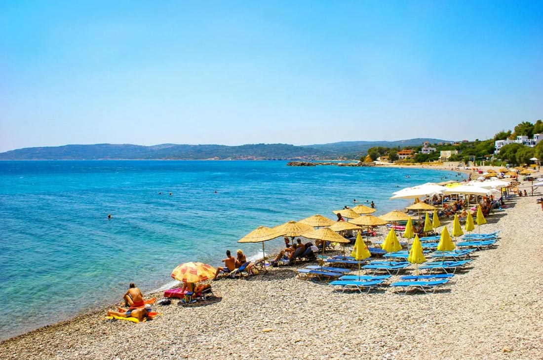 Megas Limnionas, 4 kilometers from Kampos, a small beach that combines pebbles and sand, with taverns and bars that offer moments of relaxation to the visitor.