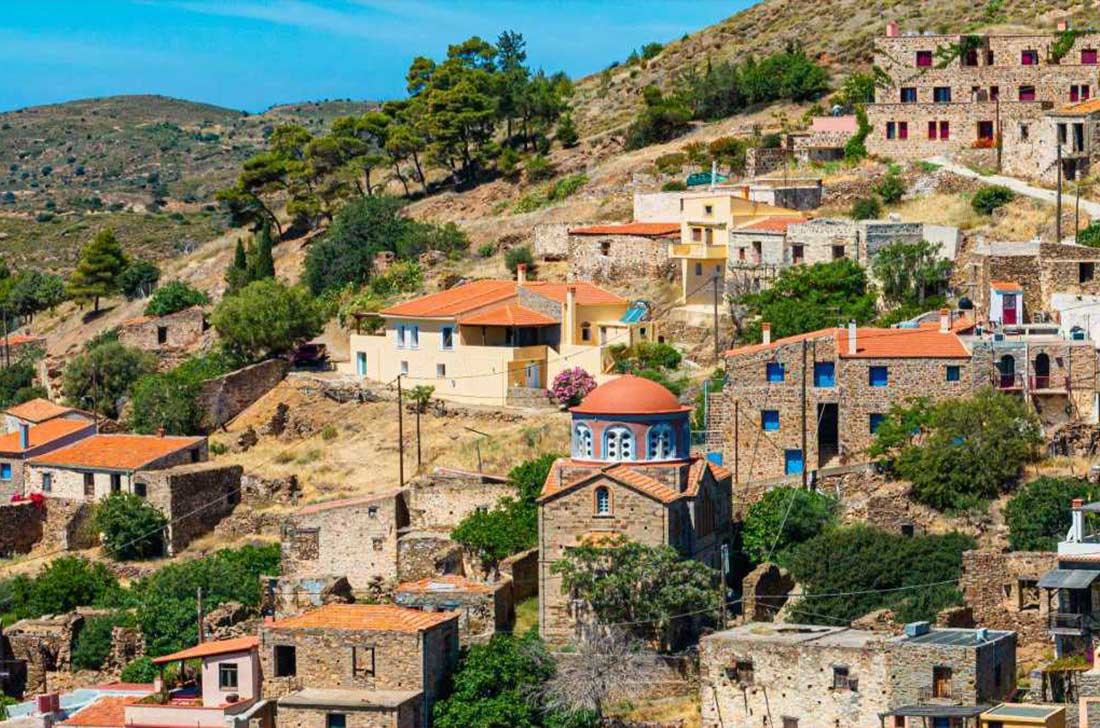 It is an inaccessible medieval village where the events of the 21st revolution took place, from which it received the nickname, the Mystras of the Aegean. It is worth wandering through the village, which hides a huge historical flashback to the past, constituting a symbolic village for the island of Chios. The stone-built houses with low roofs and small doors are elements that characterize it with hiking trails that offer the view of a delightful sunset.