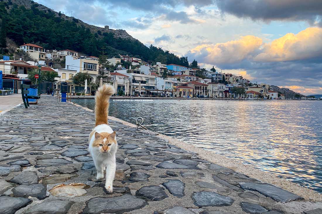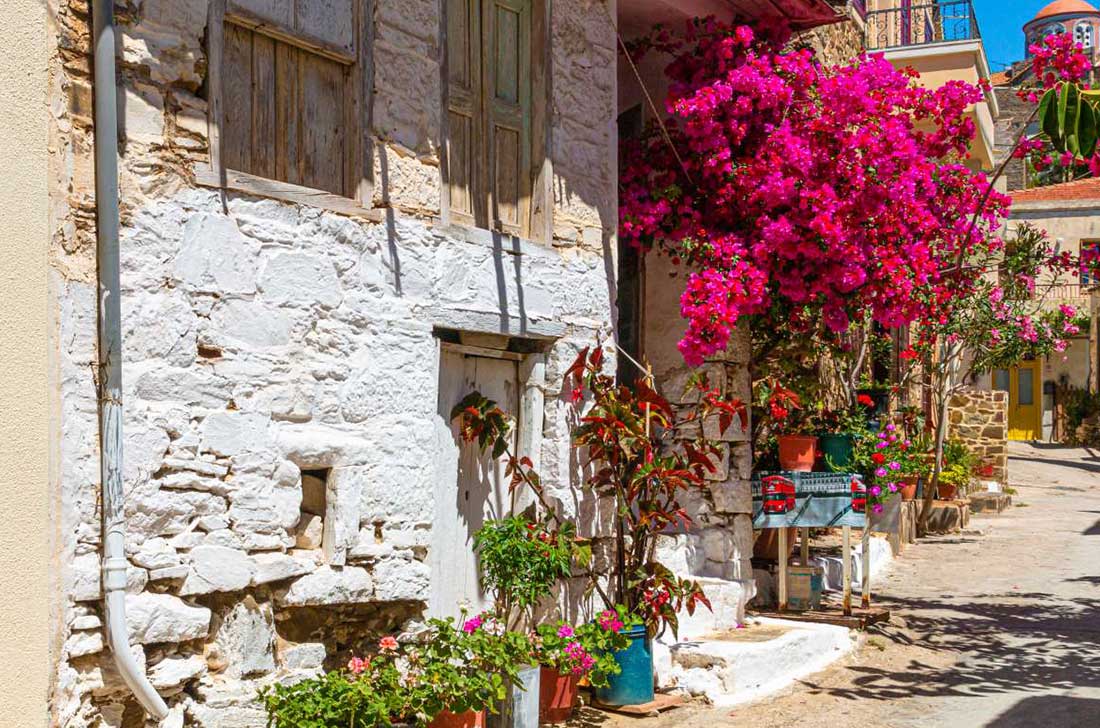 The inhabitants of the village are mainly engaged in shipping and fishing. The rich vegetation combined with the mountainous element compose a fairy-tale landscape. The harbor with the boats, the bridge, and the benches, the neat houses with the beautiful courtyards and the taverns around the harbor are among the most picturesque elements of the village. The visitor can enjoy a walk on the pedestrian street around the harbor and eat his meze, fresh fish and seafood right next to the sea. There are also frequent itineraries to Oinousses in case someone wishes to travel to the island with the nautical tradition.
